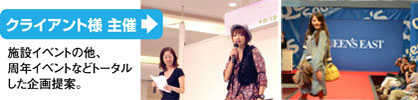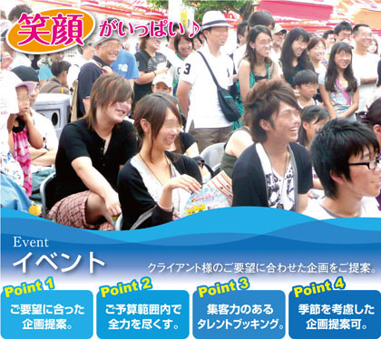 クライアント様の趣旨に合った企画をご提案致します。 会場設営から運営、そしてタレントブッキングまでご相談ください。