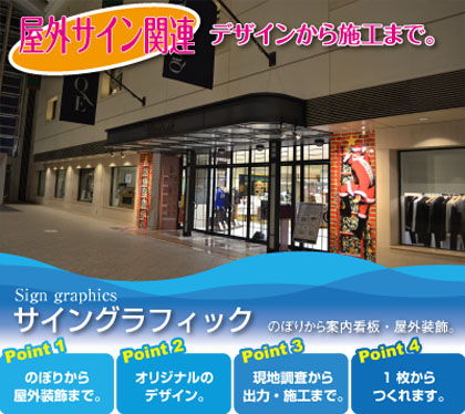 のぼり・横断幕から屋外装飾までサイズや用途、様々な場所にご対応します。